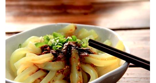 綿陽著名小吃之一的席涼粉,成品涼粉晶瑩剔透,調(diào)料紅色亮油,蔥花翠綠,在視覺上就讓人食欲大開,口感滑嫩爽口、清香微辣,不愧為享譽大半個世紀(jì)的名小吃
